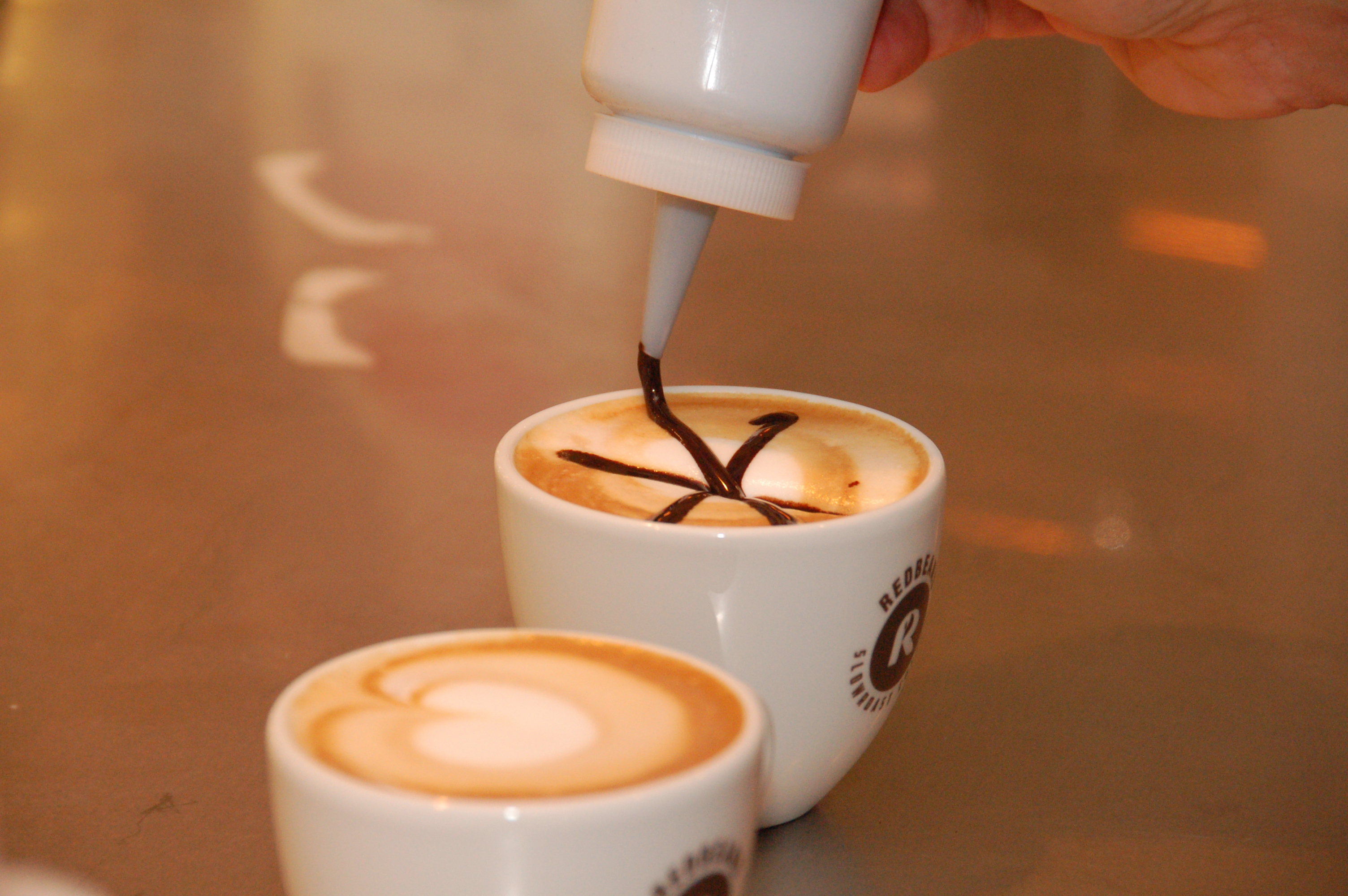 Barista Eline is heel enthousiast en leergierig, en maakt een paar puike koffies. Ze gebruikt bonen van Happy Beans, een koffiemerk dat vooral lokaal wordt gedistribueerd. De bonen worden geroosterd door Simon Levelt. De lungo is wat heet, maar heeft een goede balans. De espresso is gewoon prima, zonder uitschieters. Op de cappuccino zet ze een eenvoudige latte art, in schuim dat fenomenaal van structuur is. Voor het koelen van de melkpitchers is een koelnest, wat professioneel oogt. Ook voor het bereiden van de shots gaat ze gedecideerd te werk en timet de extractie met een stopwatch.